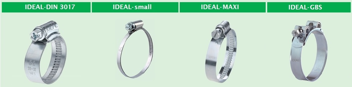 A legelterjedtebb 9-12 mm-es szalagvastagságon kívül az 5 mm-es, de akár a 26 mm-es szélességű bilincs is szállítható. Az Ideal tömlőbilincsek hosszabb ideig, valamint többször felhasználhatóak. Nagy szakítószilárdsággal rendelkező, kiváló minőségű termékek.